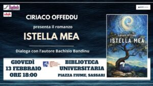 - Giovedì 13 febbraio, ore 18, 𝐂𝐢𝐫𝐢𝐚𝐜𝐨 𝐎𝐟𝐟𝐞𝐝𝐝𝐮 presenterà il suo ultimo libro “Istella Mea”, edito da Giunti. Dialogherà con l’autore 𝐁𝐚𝐜𝐡𝐢𝐬𝐢𝐨 𝐁𝐚𝐧𝐝𝐢𝐧𝐮. L’evento è organizzato in collaborazione con Koinè Ubik Libreria Internazionale