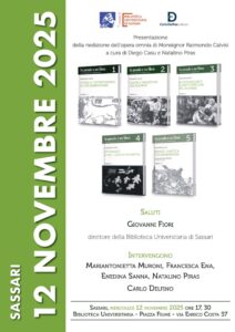 Presentazione della ri-edizione dell’Opera Omnia di Monsignor Raimondo Calvisi, a cura di Natalino Piras e Diego Casu. Intervengono Mariantonietta Muroni, Francesca Ena, Enedina Sanna, Natalino Piras e Carlo Delfino.