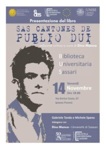 “Sas Cantones de Publio Dui”, edizione critica di Dino Manca. Dialogano con l’autore Gabriele Tanda e Michele Spanu.